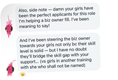 Think of it as your mix of sales school + big sis advice + a community that won’t let you play small.